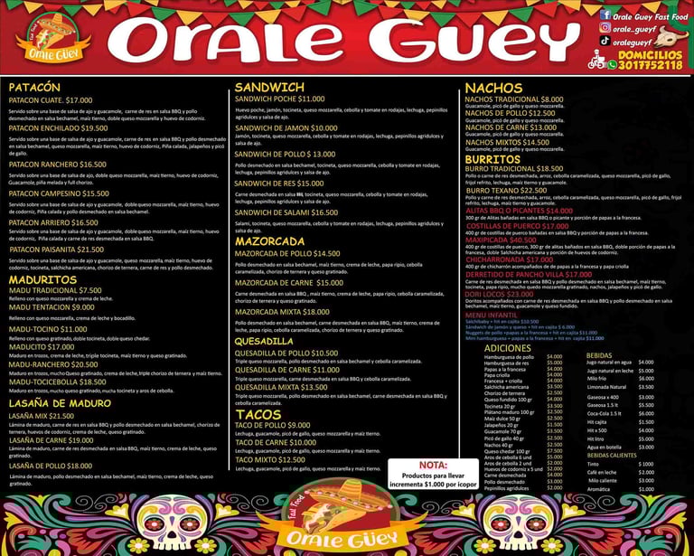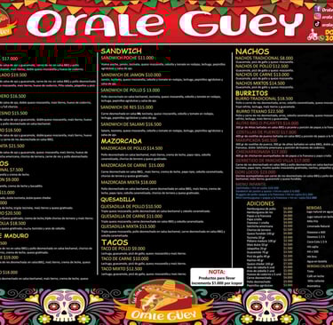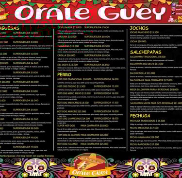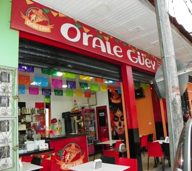 Orale Güey es un viaje a través de los sabores de México, con un toque colombiano único. Desde el momento en que entras al local, te invade una onda tropical de colores vivos y aromas irresistibles.